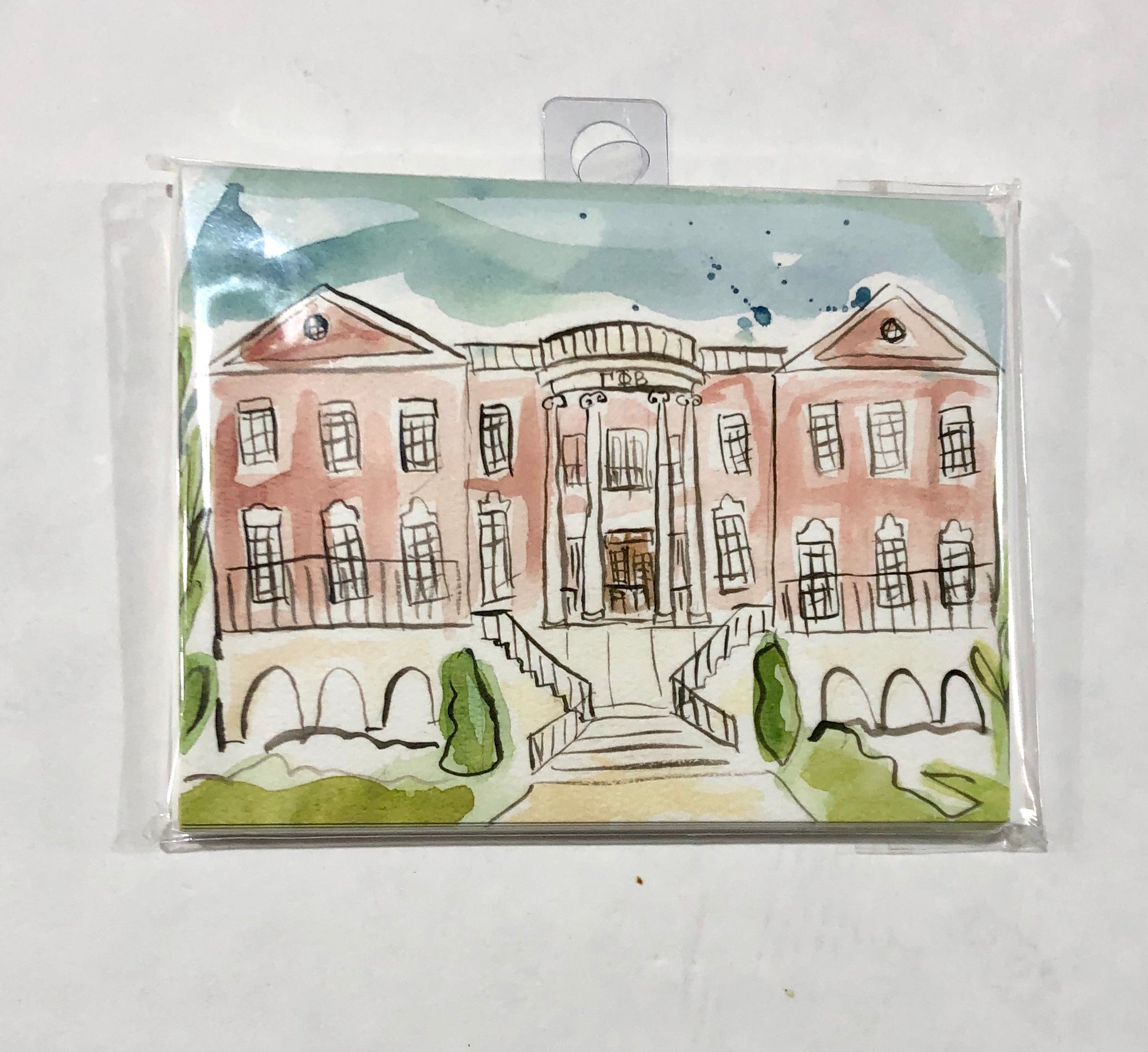 There is nothing more special to a sorority member than her sorority house. These folded notecards feature a custom water colored house illustration and are printed on premium felted paper.